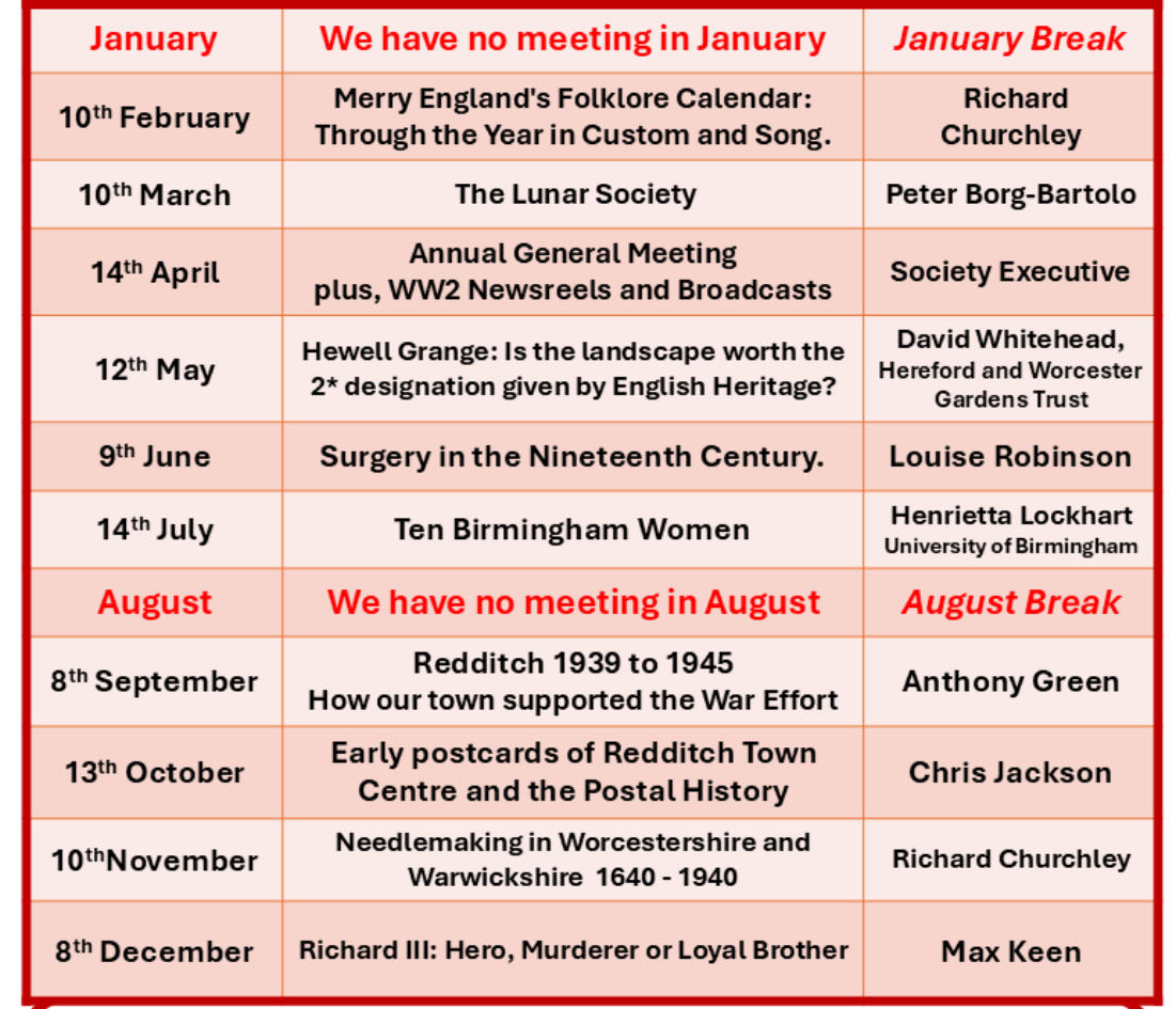 Whilst we make every effort to adhere to this programme we reserve the right to change the speaker and date due to